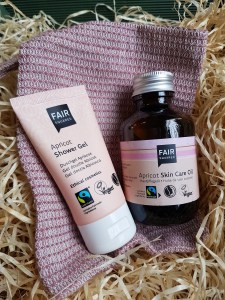 Hautpflegeöl Aprikose + Duschgel Aprikose + Waschhandschuh